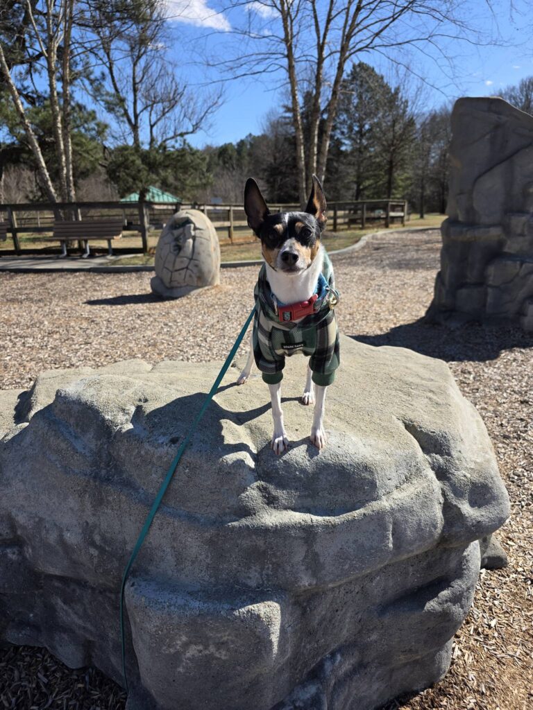 Norby gets the priority for dog sports since he’s the most engaged in those sports and is the eldest. He is currently competing in Barn Hunt and Nose Work. He also enjoys hiking and group walks.
